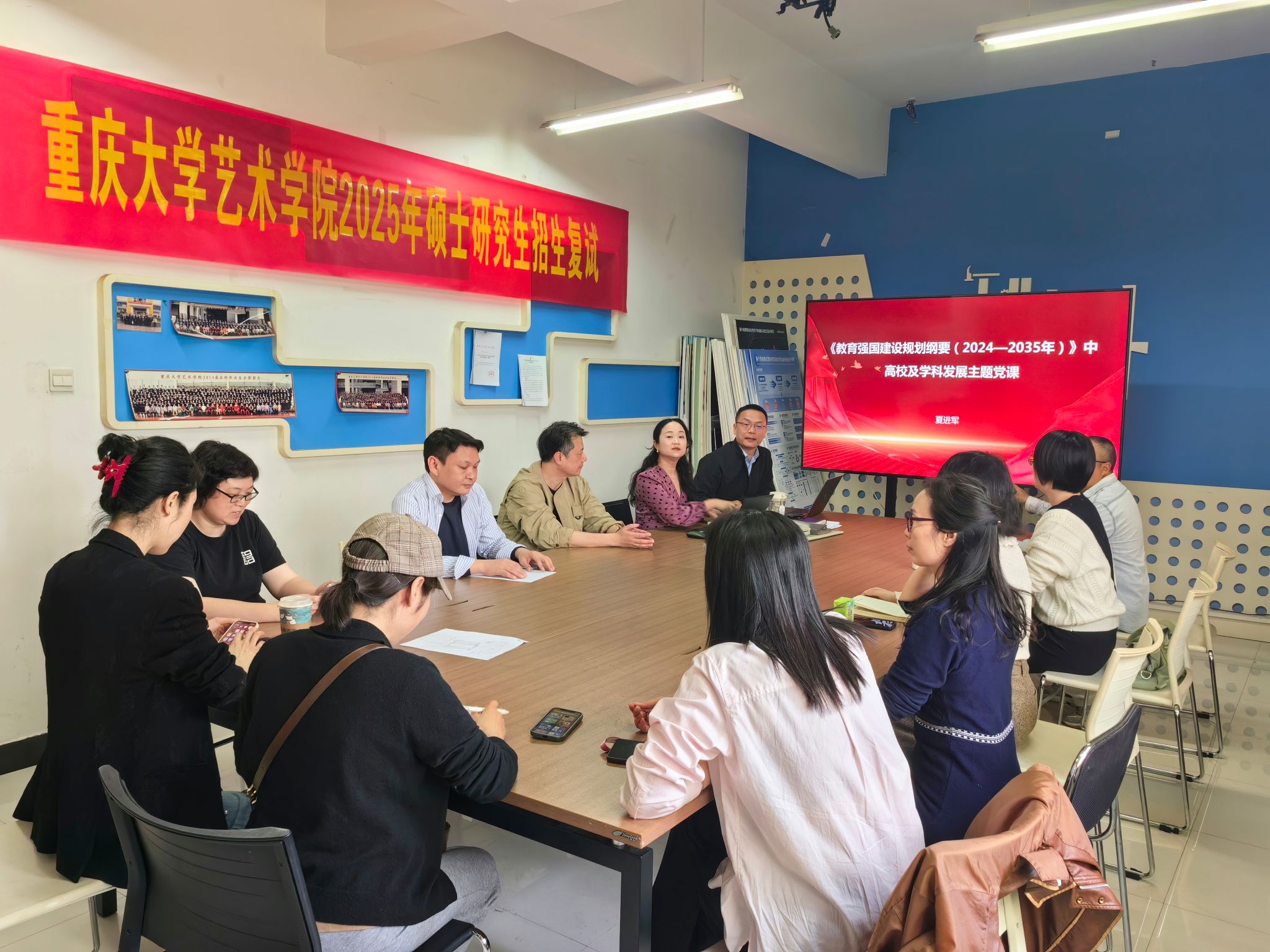 2025年4月9日下午, 成人影视片 设计学系教师党支部在学院办公楼519室开展了以“《教育强国建设规划纲要(2024—2035年)》中国高校及学科发展”为主题的党课活动。党课活动由设计学系教师党支部书记彭科星主持,学院副院长夏进军主讲,支部全体党员参加。夏进军首先从教育强国战略背景,规划纲要解析和高校专业发展路径与案例分析等三部分内容进行讲解,然后全体党员结合自身教学实践,进行了讨论交流。通过对教育强国战...