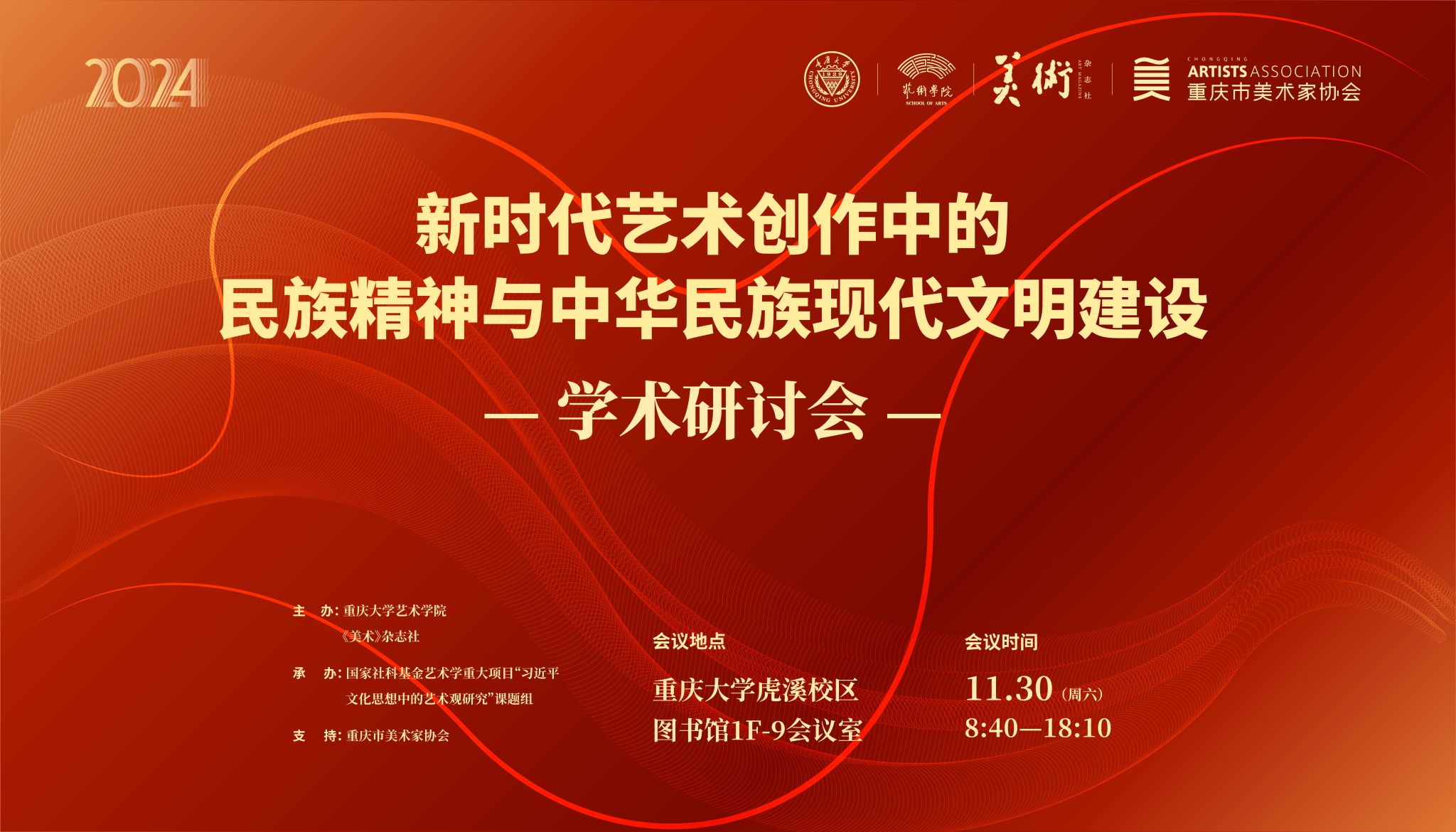 由 成人影视片 、《美术》杂志社联合主办,国家社科基金艺术学重大项目“习近平文化思想中的艺术观研究”课题组承办,重庆市美术家协会支持的“新时代艺术创作中的民族精神与中华民族现代文明建设”学术研讨会,定于2024年11月30日(星期六)在成人影视片 虎溪校区图书馆1F-9会议室举办。本次研讨会聚焦新时代艺术创作中民族精神的表达问题,讨论其与中华民族现代文明建设之间的深刻关联。研讨会将邀请来自中国文联出版社、清...