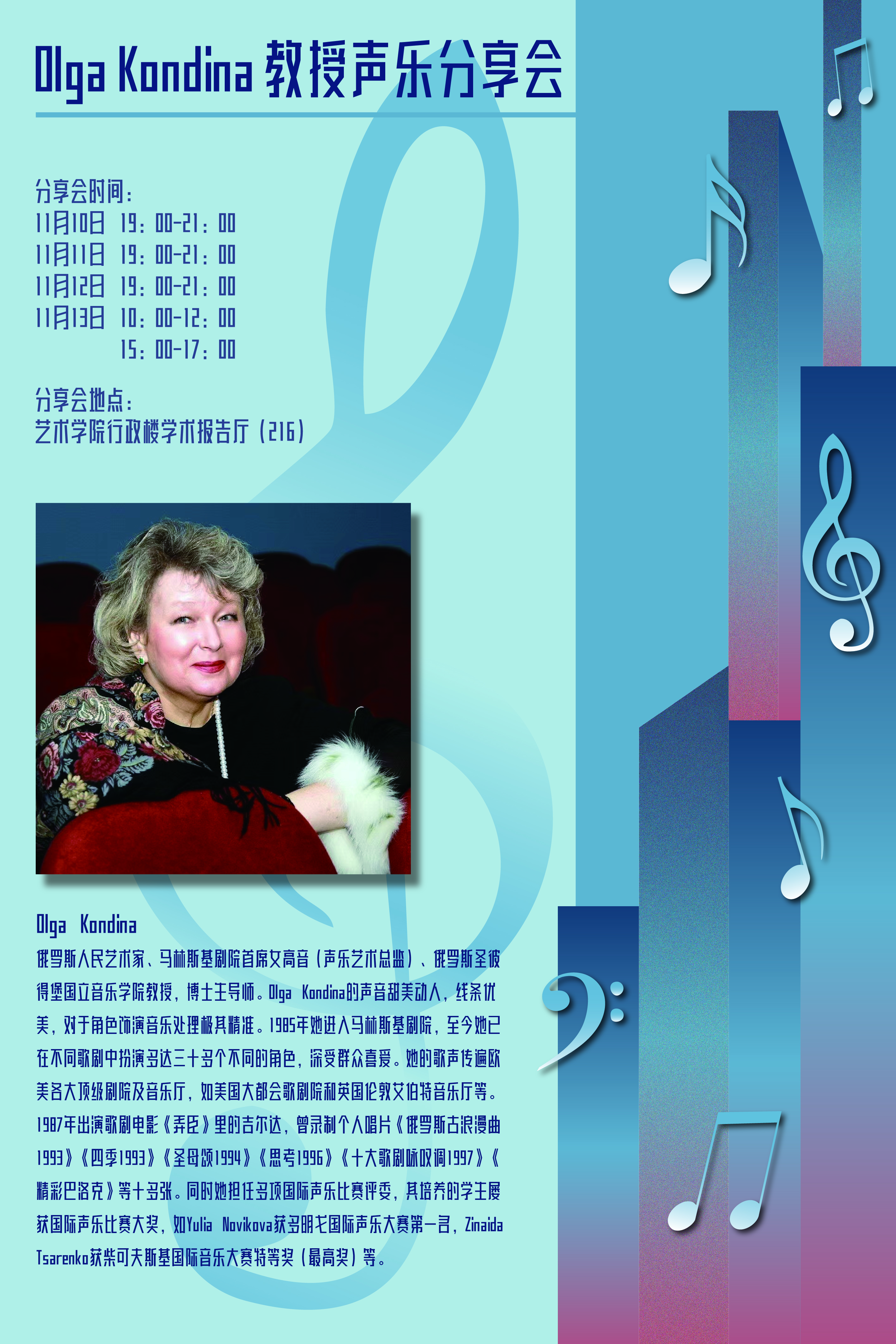 主讲嘉宾:Olga Kondina(俄罗斯人民艺术家,马林斯基剧院首席女高音,俄罗斯圣彼得堡国立音乐学院教授、博士生导师)主持人:喻思言( 成人影视片 音乐系副系主任 副教授)时间:11月10日 19:00-21:0011月11日 19:00-21:0011月12日 19:00-21:0011月13日 10:00-12:00 15:00-17:00地点:成人影视片 科学城校区 成人影视片 行政楼学术报告厅(216)主办单位: 成人影视片 承办单位: 成人影视片 音...