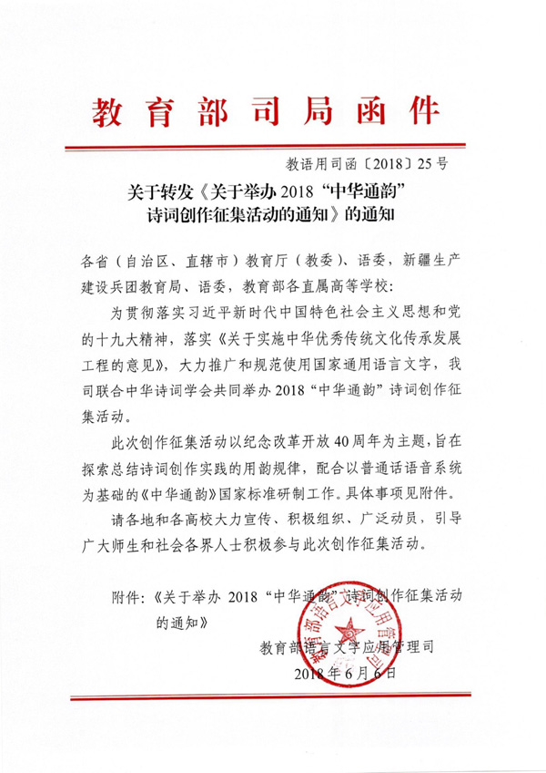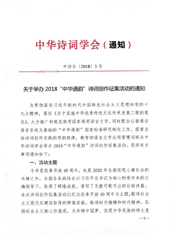 关于举办2018中华通韵诗词创作征集活动的通知