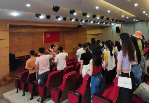 最后,在奏唱国歌后,在庄严的氛围中,曲卫红带领所有毕业生党员同志面向党旗进行宣誓。
