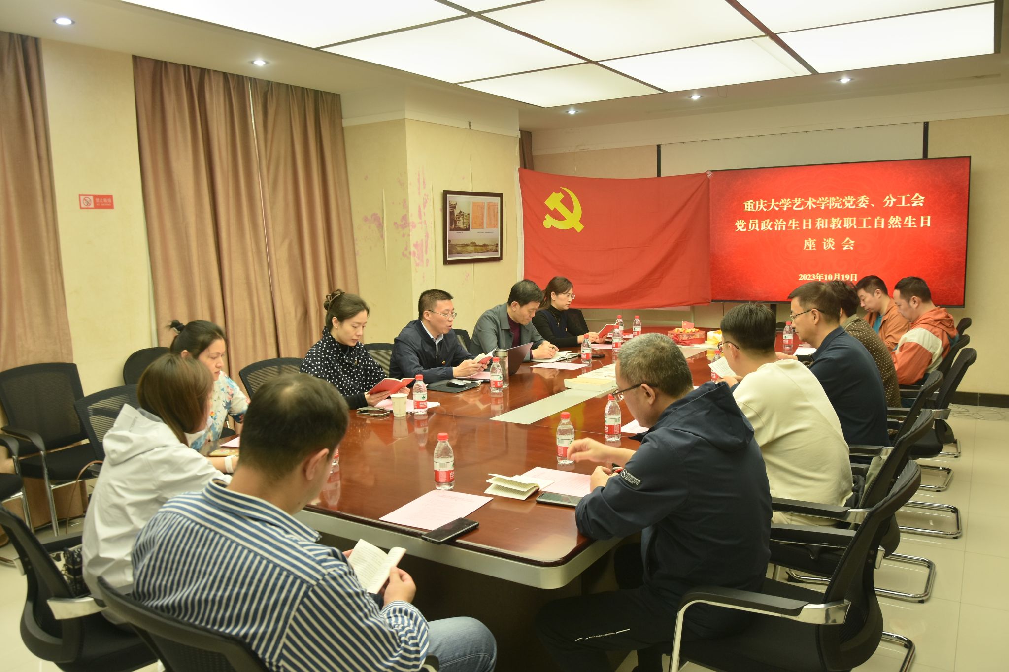 2023年10月19日下午, 成人影视片 党委、分工会党员政治生日和教职工自然生日座谈会在学院办公楼417会议室召开。会议主题是“重温入党誓词,牢记初心使命;保持政治本色,践行责任担当”。学院党委书记蒋华林主持会议并讲话。2023年7月至10月过政治生日的党员教职工和过自然生日的教职工参加会议。