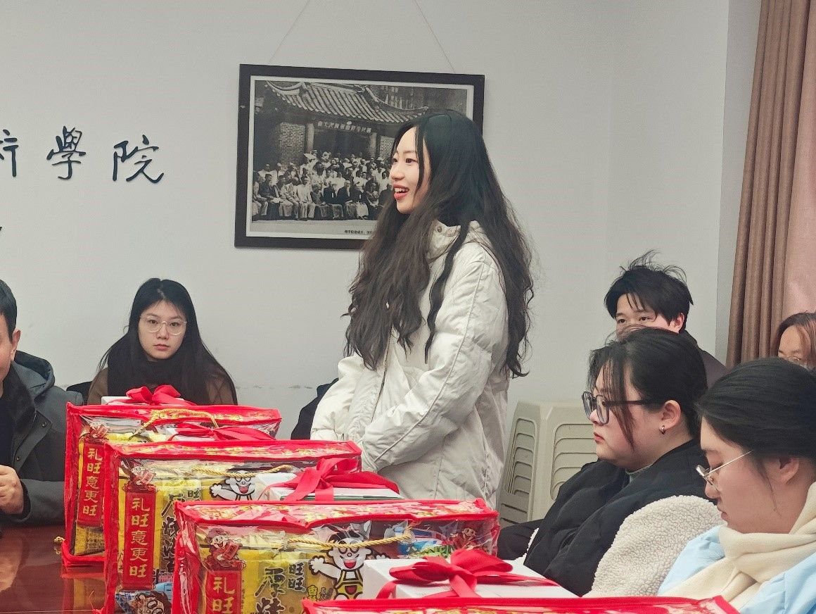 张格格代表考研同学发言,对学院领导的关心表示衷心感谢,表示将按照院领导的要求和希望,合理安排最后一周的学习生活,力争考出理想成绩,“一战成功”。