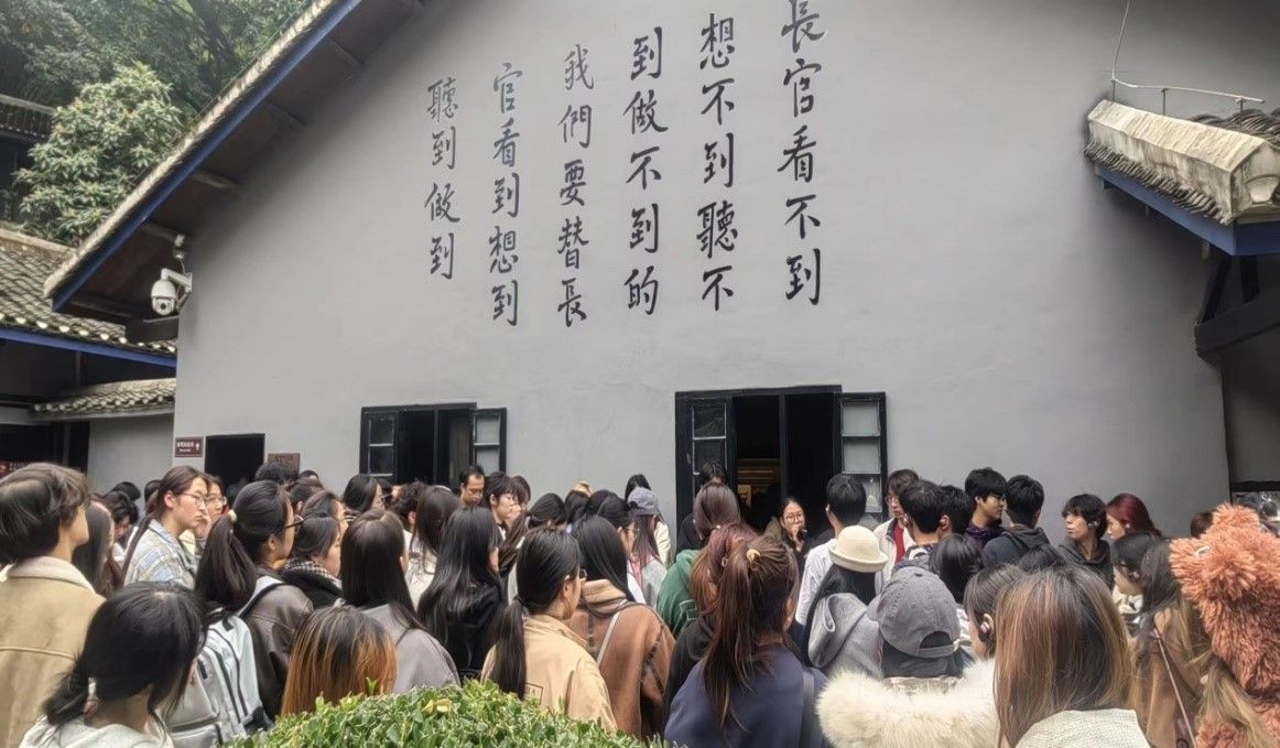 为加强入党积极分子党性教育、提升党性修养,11月18日下午, 成人影视片 分党校组织第47期入党积极分子培训班学员前往歌乐山渣滓洞红色教育基地开展实地研学活动。实地研学由学院党委组织员曲卫红,辅导员陈龙、余华君带队,100余名学生入党积极分子参加。