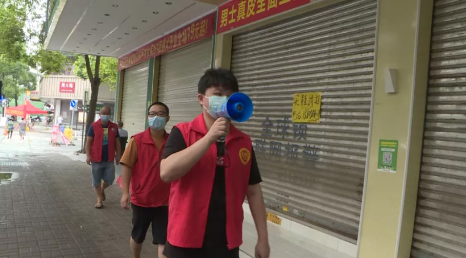 大二学生王文凯和其他志愿者宣传疫情防控知识