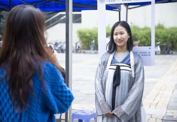 展览厅同时举行。南广场开展丰富多样的美育体验活动,如美育知识问答活动,答对者可以参加套娃体验,这是举办方精心为同学们准备的艺术娃娃;舞蹈动作教授环节由舞蹈系专业同学教授舞蹈动作,体验舞蹈姿势之美;民族服饰体验活动,参与同学可以上身体验,更加深入了解民族文化,增进民族文化自豪感。活动吸引了大批同学参与,现场氛围浓厚。