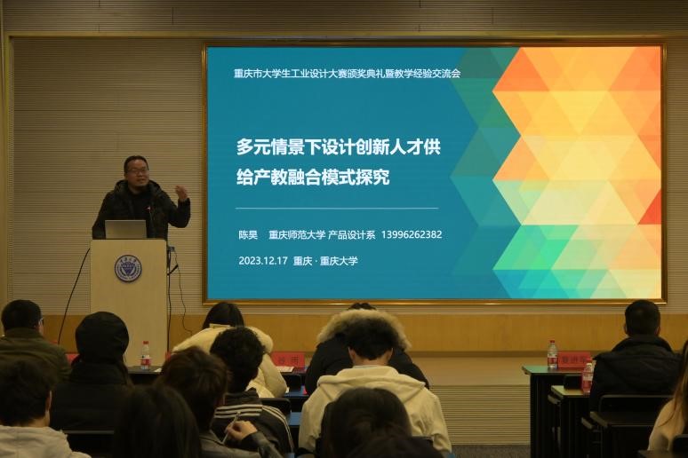 2023年12月17日,2023重庆市大学生工业设计大赛颁奖典礼及教学经验座谈会在成人影视片 成功举办,四川美术学院、重庆师范大学、重庆交通大学、重庆邮电大学、重庆工商大学、长江师范学院等重庆市16所高校产品、工业设计专业的100余名师生参加。会议由 成人影视片 设计学系副主任刘云国主持。
