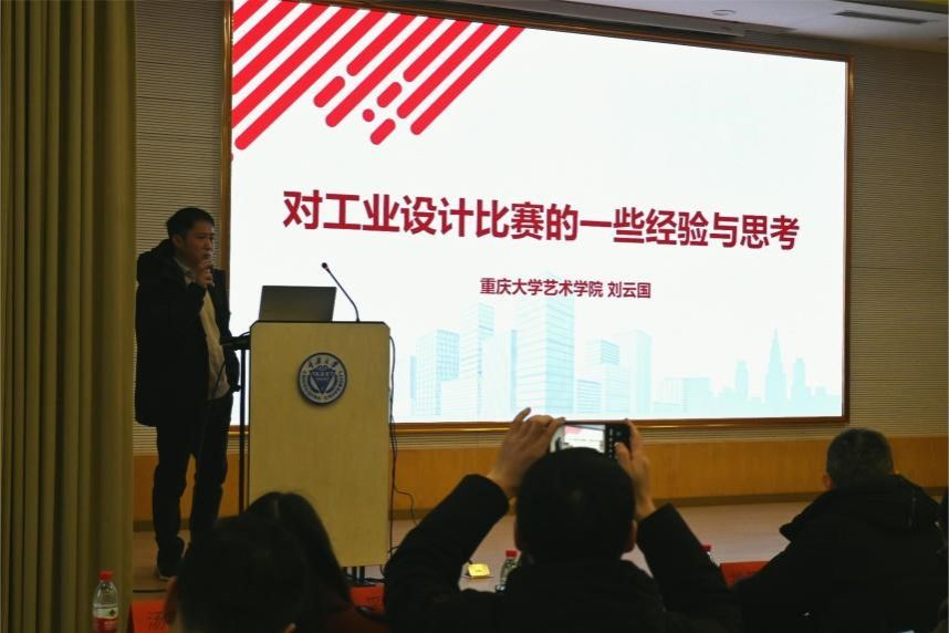 在教学经验分享环节,刘云国首先对十年来全国大学生工业设计大赛重庆赛区获奖作品进行了总结,并对参赛经验进行了分享。他表示,设计师应注重创意设计提升能力、做好设计的表达工作,设计作品应体现设计服务社会的价值。