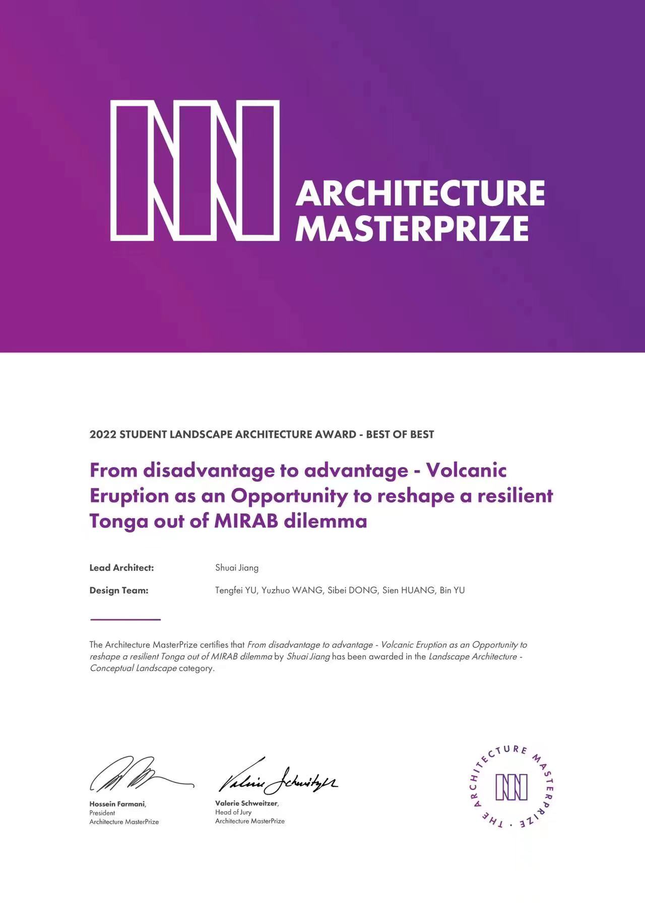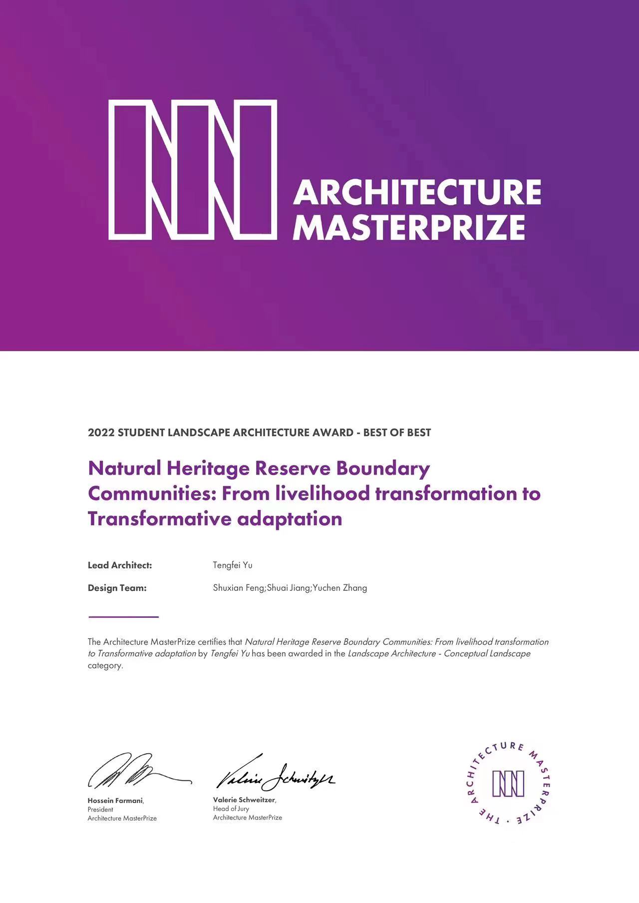 美国建筑大师奖(Architecture Master Prize)由Farmani集团创立于2016年,其前身为AAP美国建筑奖,是最具权威的世界级建筑奖项之一,为全球建筑和设计行业树立新的标杆。AMP奖项计划嘉奖世界范围内的建筑、室内及景观设计的三个方向的最佳卓越设计和创新之作,展示和宣传全球范围最具创造力与创新性的杰出人才,彰显建筑艺术科学在丰富人类生活当中具有的重要意义和价值。据参赛网络资料显示,此次参加的专业组团队包含土人、戴森、扎哈、安藤忠雄等知名事务所,学生组包含港大、哈佛、普林斯顿、央美、国美等学校,竞争激烈。