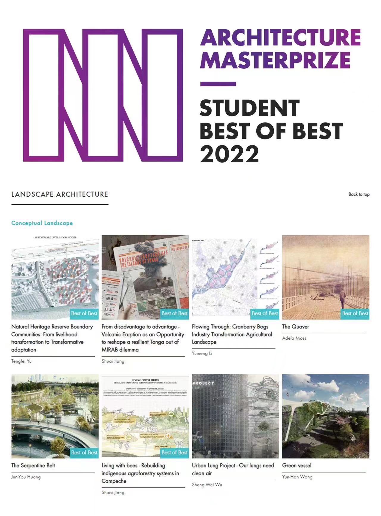 设计学系学生于腾飞(指导教师:孙俊桥)、蒋帅(指导教师:杨玲)所带领的团队分别斩获三项美国建筑大师奖学生类别概念景观组的最高奖(best of best),这是 成人影视片