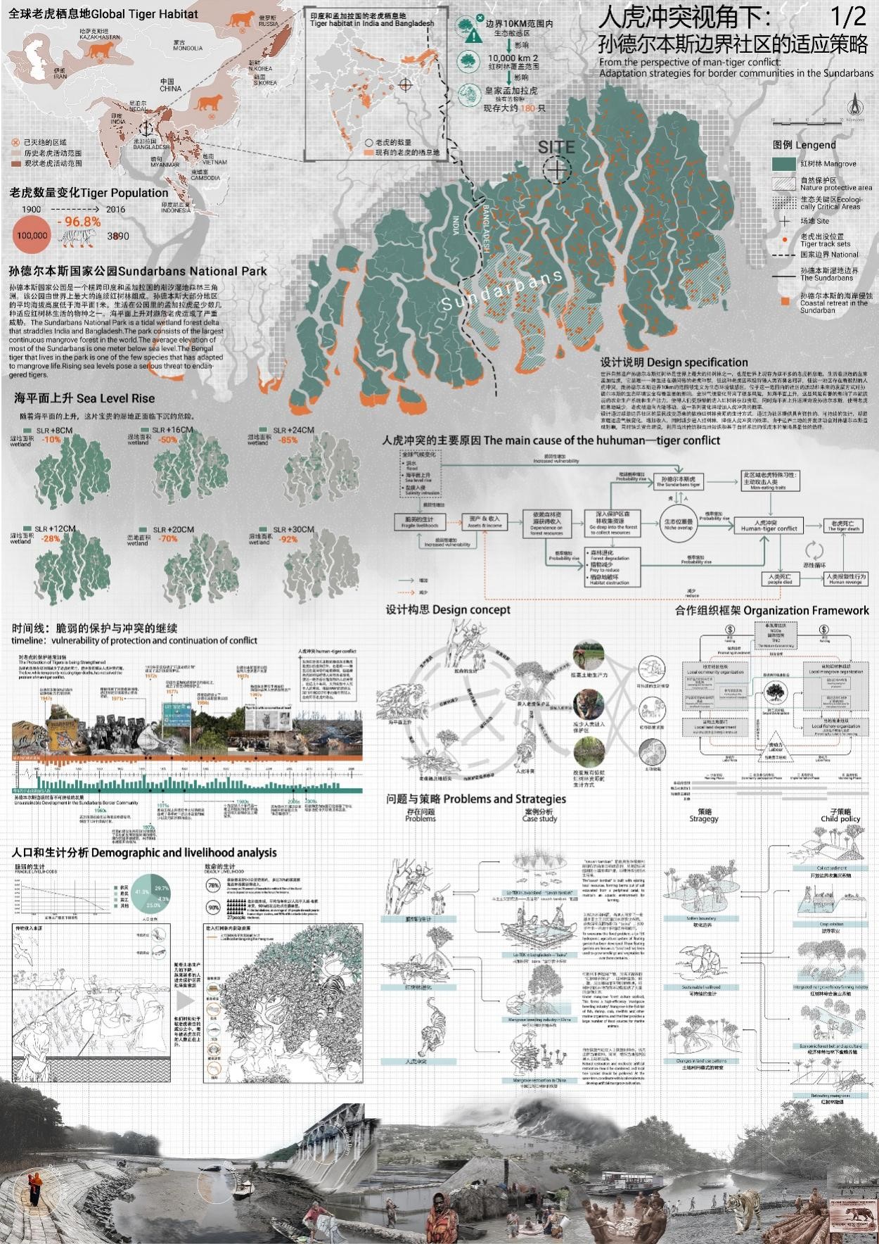 跨越孟加拉国与印度两个国家的Sundarbans是世界上最大的红树林毗连地带,该地区存在着最激烈的人类与老虎的冲突。据英国《自然·可持续性》期刊近日发表的一项最新报告显示,到 2050 年,世界近 90%的陆生脊椎动物物种失去部分栖息地。全球气候变化使得这一区域的所有物种都处于威胁之中。