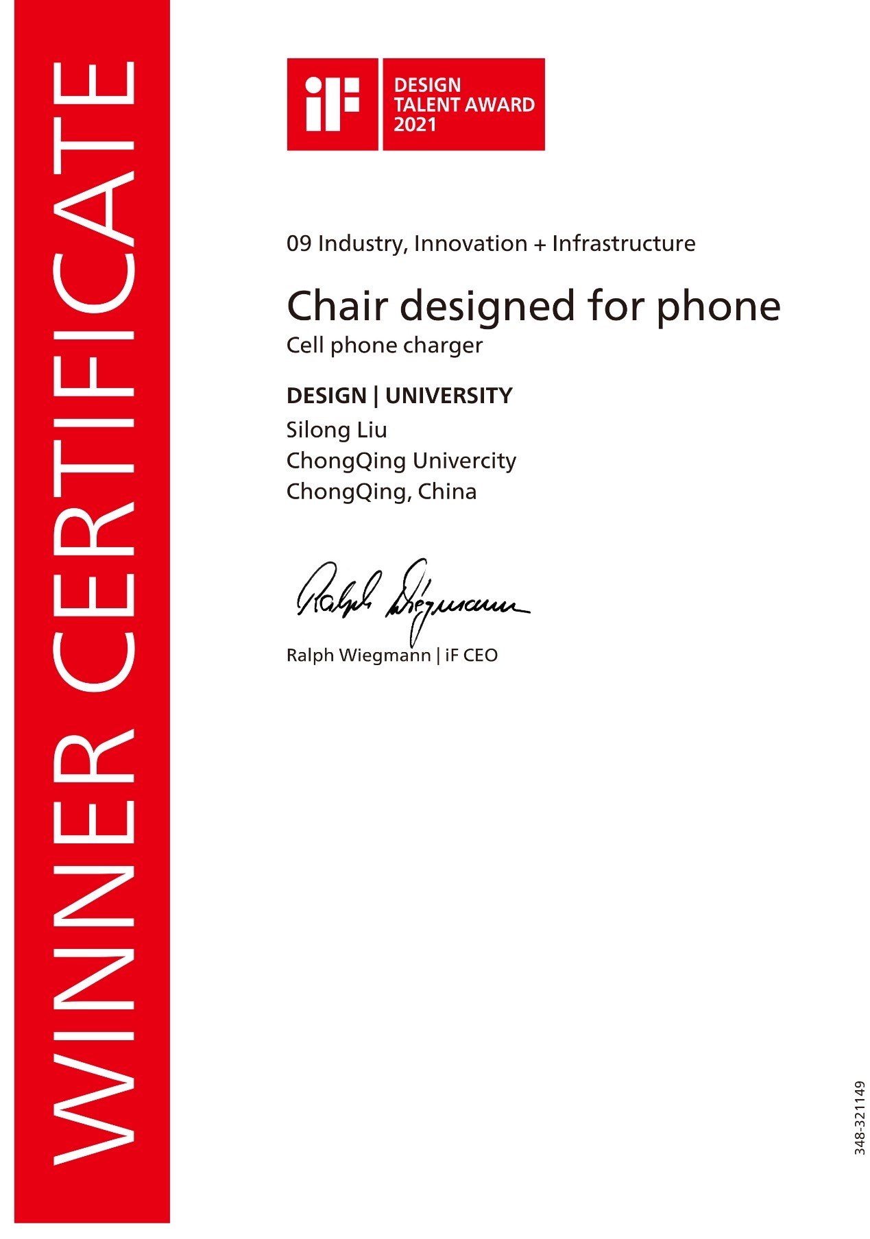 设计学系2018级产品设计专业本科生刘思龙在夏进军副教授指导下完成的设计作品《Chair designed for phone》荣获德国iF DESIGN TALENT AWARD 奖!此次获奖是成人影视片