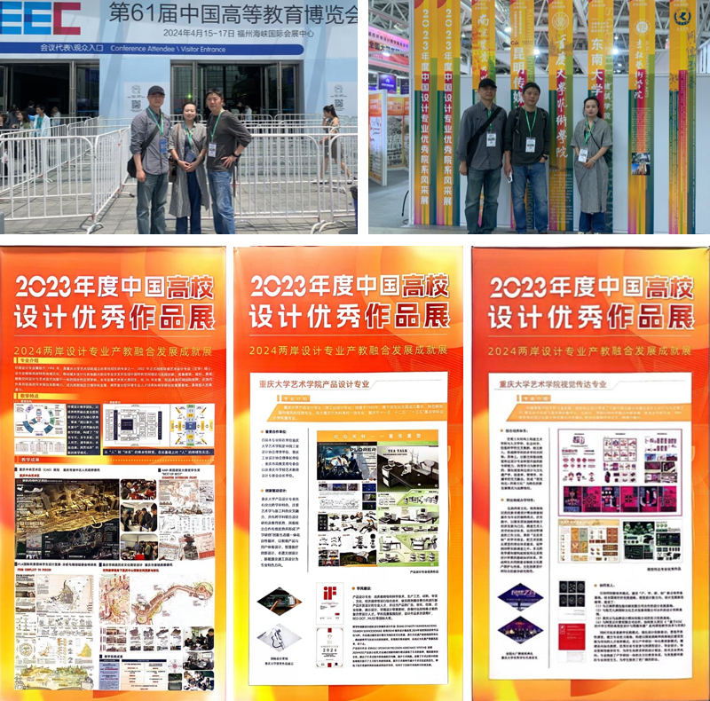 2024年4月15日,第61届中国高等教育博览会在福州海峡国际会展中心召开。“中装杯”全国大学生环境设计大赛在两岸融合发展建设成果展示区开设了“2023年度中国高校设计教学成果展(2024两岸设计专业产教融合发展成就展)”,并在高博会上举办研讨会、沙龙等交流活动。 成人影视片 设计学系主任孙俊桥教授、范正妍副教授、项之园三位老师参加与了此次活动, 成人影视片 设计学系院系风采主题展板亮相展厅,环境设计、产品设计、视觉传达专业多个优秀作品参展。