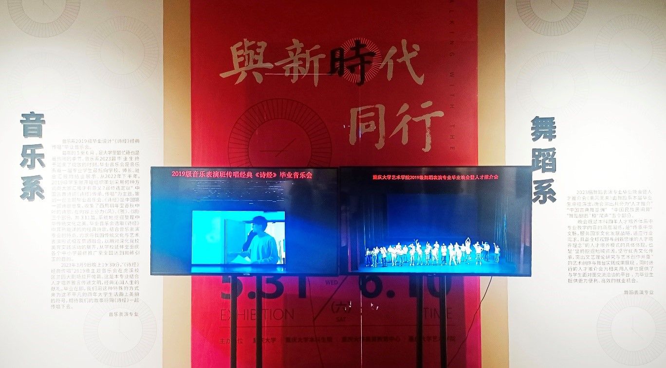 音乐表演作品:2023届音乐表演专业是以“活化中华文明经典,传承中华文明雅韵”为主旨、以《诗经》为元典的综合展演创作。作品吸纳、转化“在心为志,发言为诗。情动于中而形于言,言之不足故嗟叹之,嗟叹之不足故咏歌之。”的艺术创作方法论,以《诗经》开篇《关雎》引入,以《诗经•小雅•鹿鸣》《诗经•国风•郑风》《诗经•国风•秦风》等千古名篇、雅言佳句为创作主体内容。作品通过一咏三叹、视听交感传递、传承中华文化诗教、乐教的情感特质与民族精神,不仅是中华传统文化创造性转化、创新性发展的一次新尝试,也是将中华文明经典转化为音乐教育、人才培养、美育思想资源的创新实践。