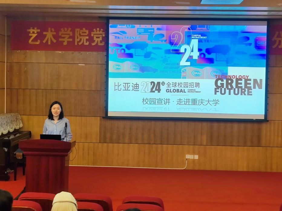 与全球新能源汽车领军者比亚迪携手,在学院报告厅举办了以“汽车造型设计”为主题的专场招聘会。招聘会由毕业班辅导员杨传国主持,学院2020级、2021级产品设计专业和视觉传达专业部分学生参加。