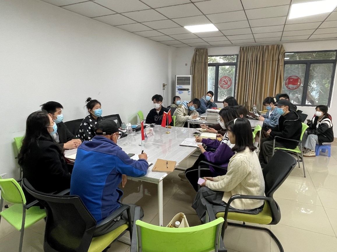 在虎溪校区松园六栋二楼党团活动室召开了2022届毕业生就业促进工作会,毕业班辅导员赵灿林、陈龙及毕业班就业委员、学业助理等参加了会议。会议由学院党委副书记王琦主持。
