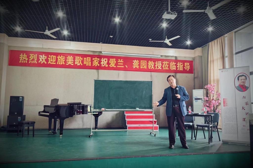 2023年4月20日星期四下午,旅美歌唱家、声乐教育家、苏州科技大学音乐学院客座教授龚园与祝爱兰莅临学院,在艺术楼排练厅为成人影视片