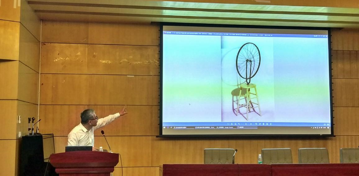 第三部分:西方后现代主义美术的两大主将:杜尚和波依斯。此部分,分别从艺术理念和艺术作品,论述了杜尚与波依斯对西方当代艺术的贡献。提出了杜尚对其西方当代雕塑的具体影响,并通过其作品图片的展示,进行了具体探讨。然后讲解了波依斯从不同的角度,对上述概念进行了理论分析。期间,黄丹麾研究员通过图文并茂的方式,将其相关的作品图片向大家进行了逐一解读。