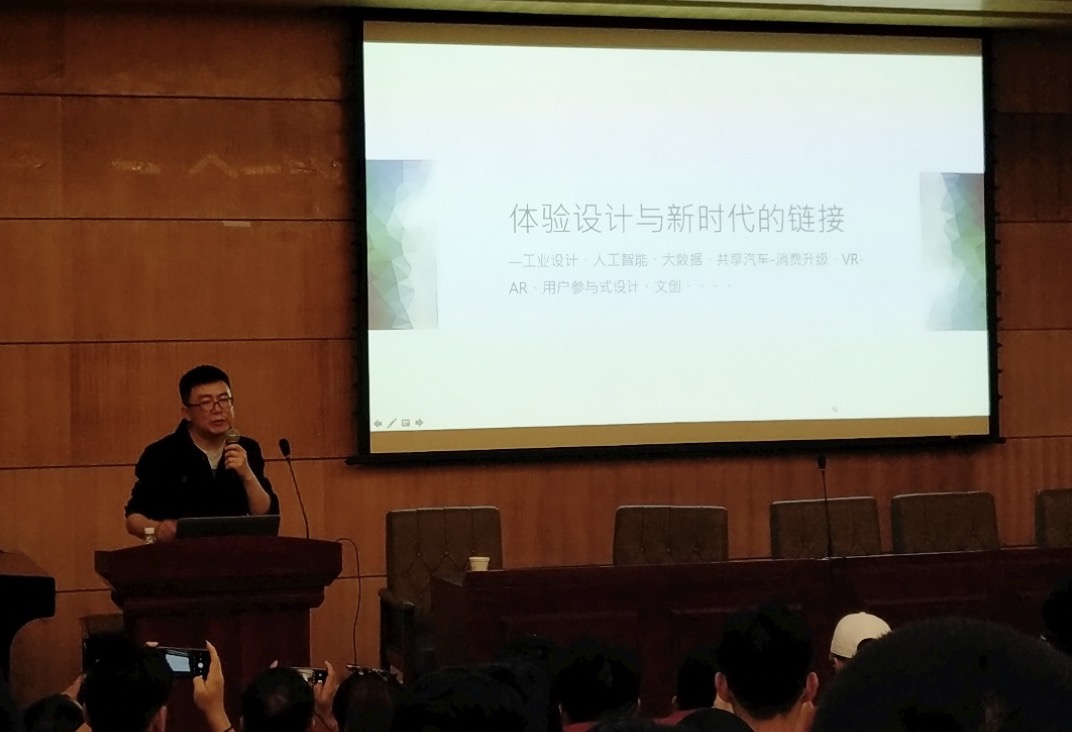 景博士还介绍了体验设计行业目前的发展现状,近些年在发达国家市场对用户体验设计师的需求日益增长,我国也有这样的趋势,在未来体验设计可能将会有更加广阔的发展空间。景博士指出,体验设计不仅仅只是局限于互联网企业,现在许多传统的行业如车企、银行国企等都在开始转型做体验设计。随后景博士还讲解了用户体验设计(UX)与ID、UI、GUI、UE的异同之处,及市场对一个好的体验设计师的要求,明确了同学们往此方向发展的目标。之后景博士通过自己的实际项目经验,给同学们分享了体验设计产品的流程。在此他指出了定性和定量研究相结合的必要性。最后景博士做出总结:万变不离其宗,设计方法并不会过时。对待新事物,先跟上,路是走出来的。设计要做出来才有未来,还要把成果落实在产品上。