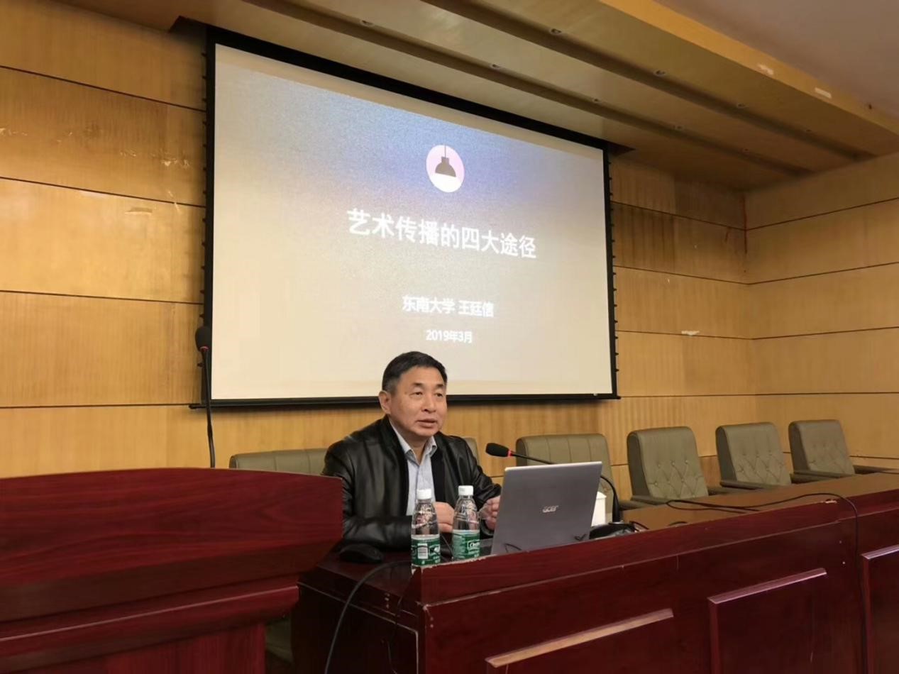 本次讲座,王廷信教授瞄准新时代影响艺术发展的学术前沿,以『艺术传播的四大途径』为主题,从传播学的角度出发,全面分析了为何要研究艺术传播学以及艺术传播学的研究现状、研究的主要问题与研究方法。在探究艺术传播的四大途径时,王廷信教授首先通过对民俗艺术的类型与功能的解析,阐释了民俗与艺术传播之间的关系;其次通过艺术作品的成本及其商品属性,指出了艺术在借助商业途径传播自身的过程中带来了一定的经济效益与社会效益;同时,通过媒介的基本类型及媒介对艺术信息加工的常见机制的具体案例分析,说明了各种媒介为艺术传播提供了无限的空间,也为艺术传播提供了最为快捷的途径;此外,还指出教育作为传授知识与技能、传播文化的重要通道,其内容、方法、手段决定着艺术信息传播的成效,也为艺术领域培养了大批人才;最后,阐述了民俗、商业、媒介、教育这四大艺术传播的关键途径在传播方法和手段上是互相融合而非单一存在的。王廷信教授用朴实的语言娓娓道来,举例贴切,富有深意,带领全体师生感受艺术传播的魅力,启发着大家对该领域的思考与探索。
