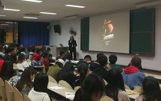 2017年 10月12日下午6点半,虎溪校区DZ122教室座无虚席,掌声阵阵。北京理想创意艺术设计有限公司董事长兼艺术总监、中国美术家协会成员,美国世界杰出人才奖获得者、故宫博物院院徽设计者邵新老师主讲了主题为“目标+理想+坚持=成功”的精彩讲座,受到在座学生的热烈欢迎。