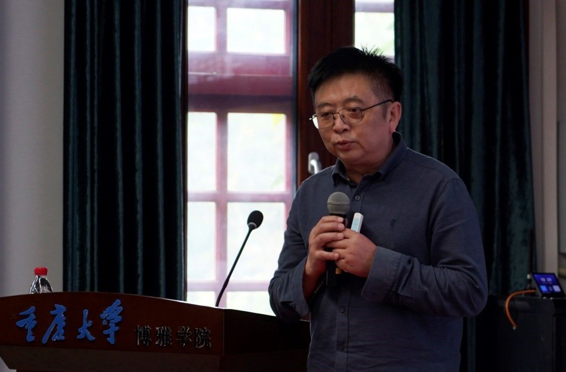 董虹霞(四川美术学院艺术人文学院副院长、教授)作《戴泽重庆时期绘画中的文化景观与身体在场》专题报告:以艺术地理学为视角,聚焦于1942-1946年戴泽就读于中央大学期间的艺术实践,以“地理环境”“中心—边缘”“文化传播”为问题讨论的路向,通过《嘉陵江上》《沙坪坝中渡口》《重庆铁匠铺》《沙坪坝茶馆》《弹球》《老板和老板娘》《重庆少年》等具体作品,围绕“此在”——以松林坡上的学习体验为内容的作品、“隐喻”——嘉陵江边的轮渡事业、“身份”——街巷小铺里的日常烟火,来看其作为重庆人在艺术创作中流露的地方认同感的身体在场痕迹、区别于他者的地方感,由此牵涉的“身份认同”及其超历史性。