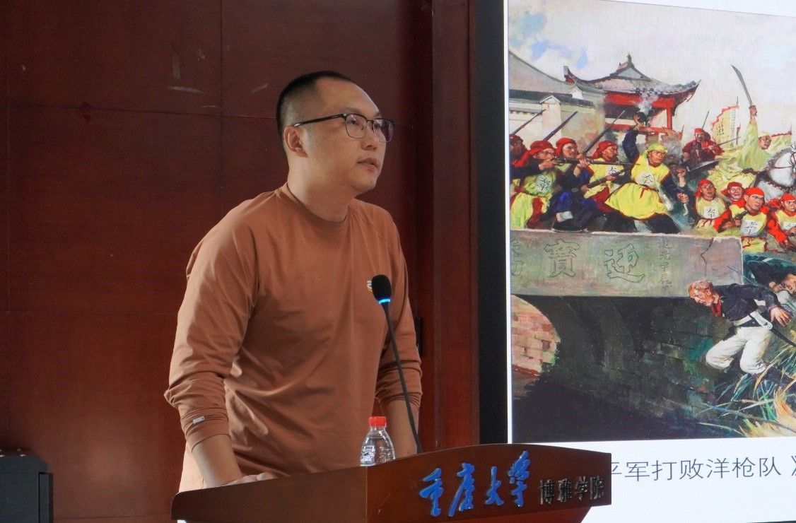 李庚坤(四川美术学院艺术人文学院副教授)作《戴泽历史画创作中的“实证”与“想象”——以〈张献忠除暴安民图〉为例》专题报告:20世纪50年代至70年代,应中国历史博物馆之邀,戴泽创作了《义和团廊坊大捷》《张献忠除暴安民图》《太平军大败洋枪队》《大泽乡起义》等一批中国古代农民战争题材的历史画作品。以戴泽50年代末60年代初创作的《张献忠除暴安民图》为例,通过辨别其中的历史史实与历史想象,揭示新中国古代农民战争历史研究、土地革命题材美术作品创作对古代农民战争题材绘画的影响。