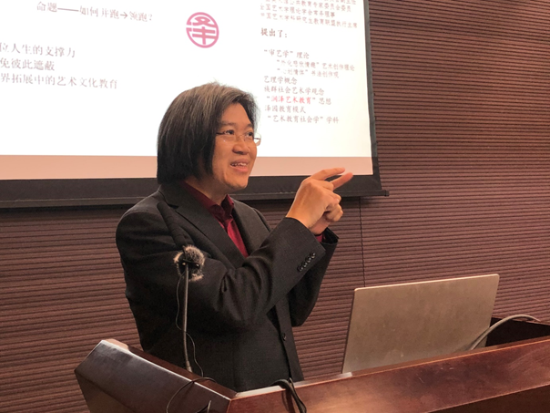 艺术教育高等研究院教授、院长,博士生导师顾平教授做了《“美”向何处寻——“美感”捕获的途径与方法》的主旨宣讲。顾平教授的学术成就涉及艺术史论、美术教育、美术考古等诸多领域,代表性著作有《林风眠》《皇家赞助与文化认同:南宋院体山水画风成因研究》《美术教育学导论》《近现代中国画教育史》《美术考古学学科体系研究》《沚阜文存》《中国画教育现代转型》等10余部,出版画册多部,发表学术论文百余篇。同时,作为首席专家,顾平教授先后主持国家社科基金艺术学重大招标项目《中国画学研究》、重点项目《宋画创作的文化情境考察》、一般项目《两宋画院研究》等多项。获第三届全国美术教育论文评比一等奖、省部哲学社会科学优秀成果奖、教育部新世纪人才计划等多项奖励。在主旨宣讲中,顾平教授着重强调了四个方面:一是美从何来——美在自然中,美也在社会生活中,美更在艺术中;二是“美育”为什么要依赖“艺术”——大学美育,是大学生“美感”养成的教育,终结目标是“美感经验”的获得——“审美能力”;三是“美感”捕获的路径与方法——经典艺术的引领与生活的审美化是美感捕获的最佳路径;四是延伸的思考——为什么各类“美育”均很难提升受众的审美能力?如果艺术没有“美感”,其是否还有存在的价值?艺术作品、艺术教育、艺术体验作为审美文化及其美育路径,绝不单纯是形式美感,而是要凝聚出艺术性、人文性的复合意义。在某种意义上,顾平教授的宣讲是李睦教授宣讲的具体注解。