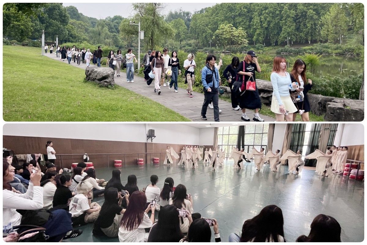 随后,游学团沿银杏大道、植物园、图书馆以及艺术楼步行,欣赏虎溪校区美景。在艺术楼,新加坡淡马锡理工学院设计学院师生们参观了陶艺实验室与装裱实验室,还观摩了舞蹈系师生的排练,欣赏了充满中国传统文化韵味的舞蹈表演。