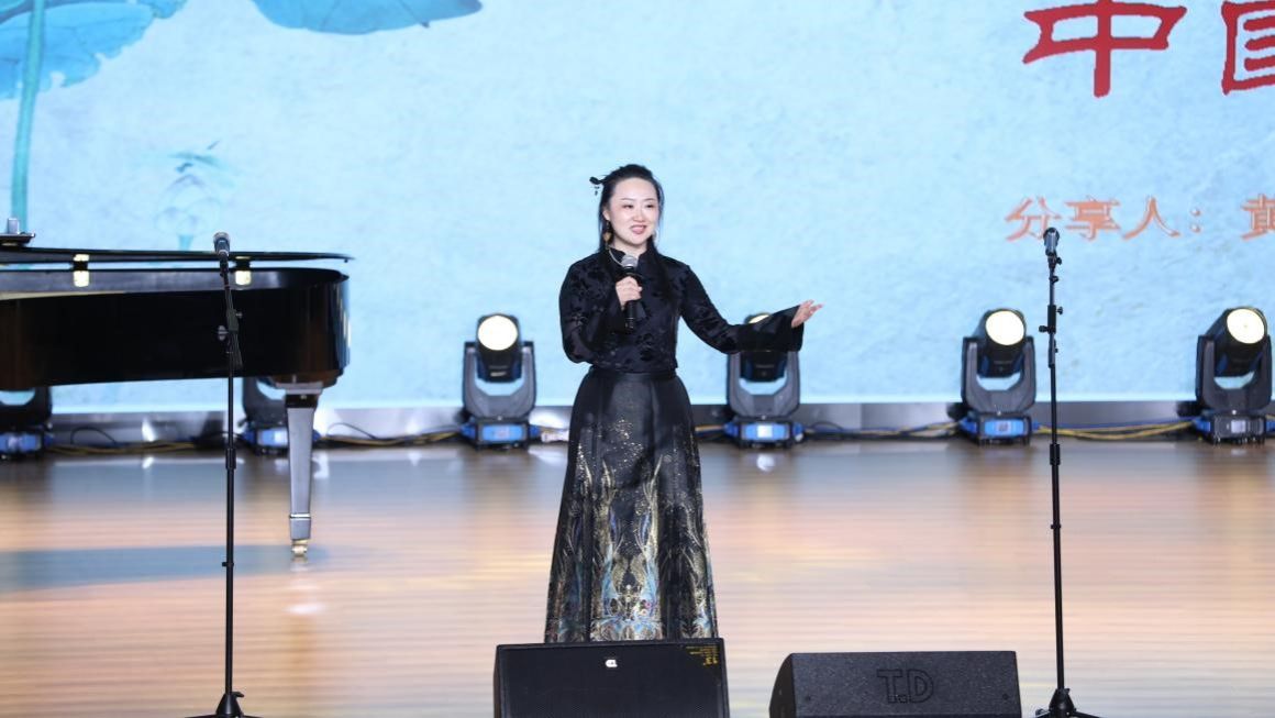 音乐系毕业的优秀校友,巴蜀科学城中学骨干教师成储希演唱了《幽兰操》,受到师生的热烈欢迎。