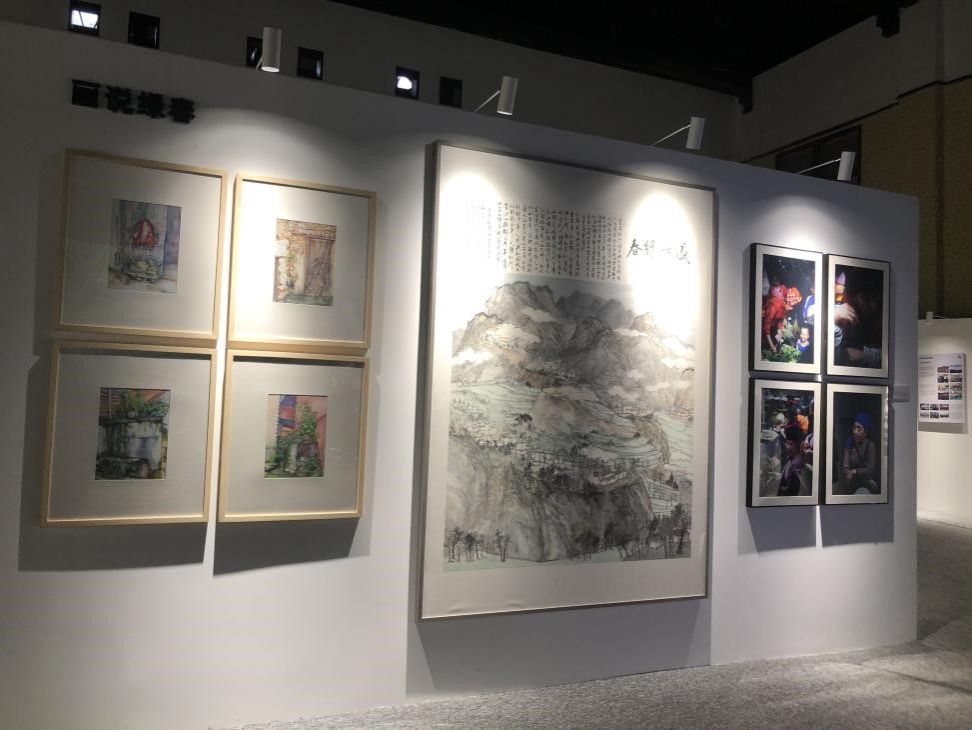 绿春考察团先后数次走访云南省红河州绿春县等地,通过现场写生与艺术考察等形式采集大量创作素材完成了系列创作。作品以绿春自然山水景观、人文历史、民族风情以及近年来当地的新发展为主要题材,部分作品已多次在各类展览中与学校师生及社会大众见面。雒三桂以撰写古散文形式结合书法艺术,抒怀徜徉于绿春迤逦壮美风光中的愉悦之情,展示了深厚的文化艺术学养;肖力以水墨人物画形式创作出绿春集市的繁荣景象,空间营造巧妙,笔墨意趣盎然;熊喜秋的水彩作品描绘了劳动人民采茶劳作场景,内容丰富,色彩和谐;高源以山水画形式创作出绿春“天空之城”的地域风貌,场面开阔,笔墨温润;武若尘的油画《哈尼老人》,刻画出老人劳作时的动态,造型生动自然,语言表达精微;范坤的系列摄影作品,以专业视角用镜头生动地捕捉哈尼族百姓幸福安乐的美好瞬间。