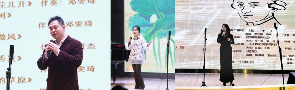 音乐会以“声”、“韵”、“剧”三个篇章,分别由喻思言、黄慧、苏勤三位教师分享解说,学生演唱为表演形式,在女声小合唱《红梅花儿开》优美的旋律中开始。