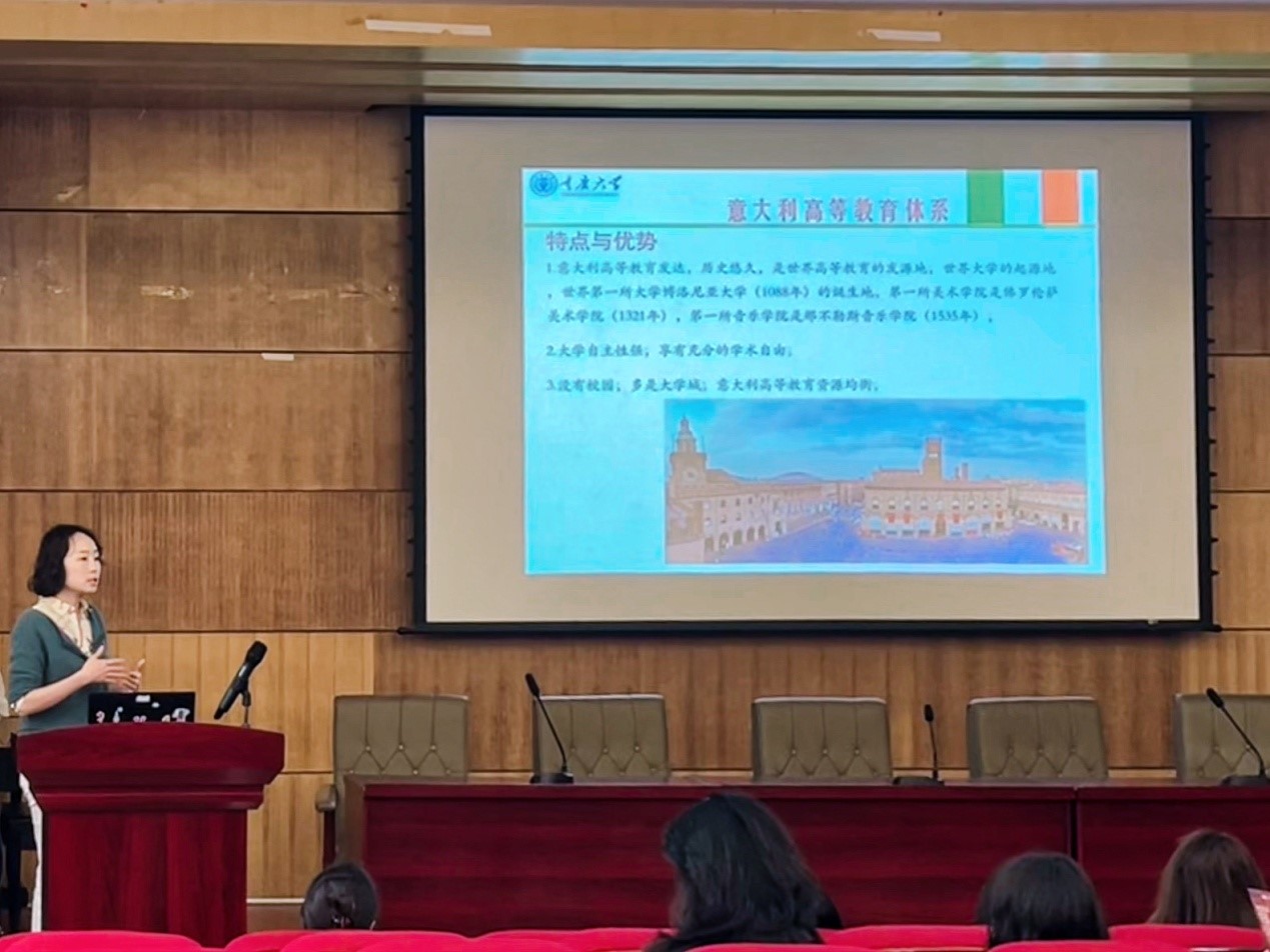 在虎溪校区学院楼二楼报告厅进行了“艺览全球 国际视野”海外留学访学讲座系列活动的第二讲“意大利留学介绍”。本次讲座邀请成人影视片