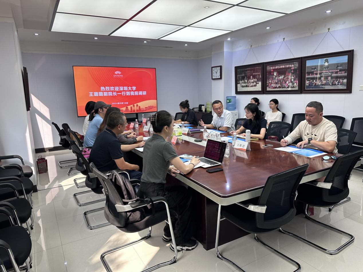 王璐璐介绍了深圳大学艺术学部近年来谋划学科定位、推动专业建设等情况,期待双方在人才培养、学术交流等方面建立长期有效的深度合作。双方就学科建设、人才培养等进行了深入交流。