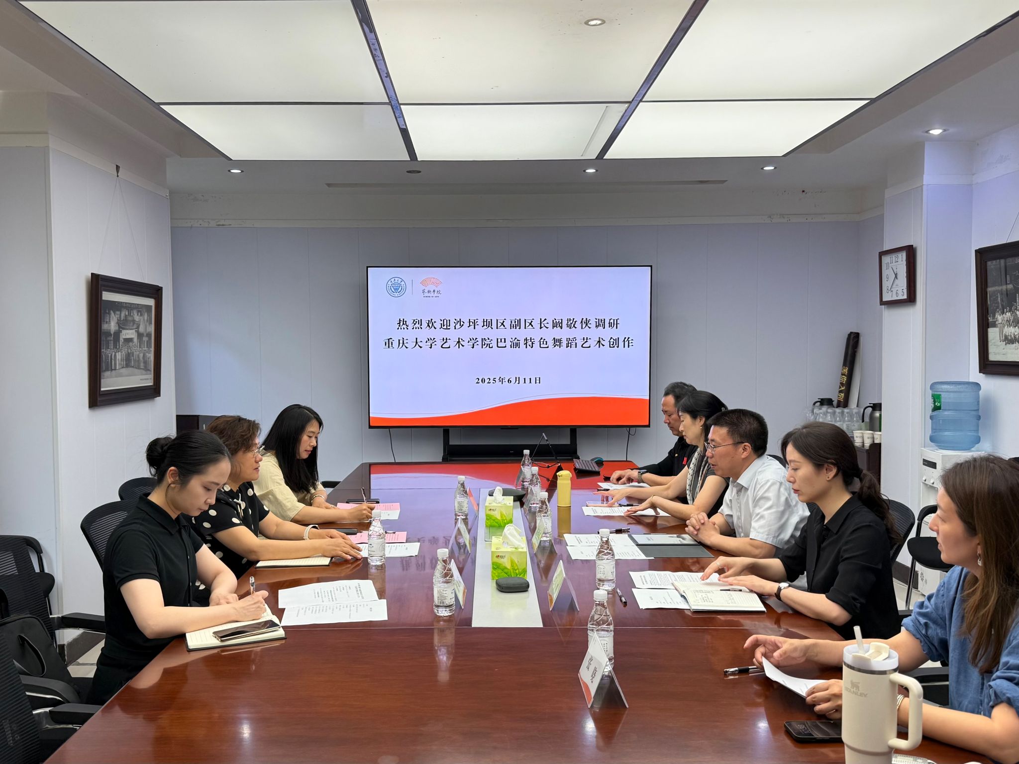 2025年6月11日上午,沙坪坝区副区长阚敬侠一行莅临 成人影视片 ,就巴渝特色舞蹈艺术创作工作进行专题调研。 成人影视片 党委书记蒋华林陪同调研并参加座谈,副院长、沙坪坝区舞蹈家协会主席彭小希,舞蹈系主任赵倩、副主任张晓及相关师生参与调研。区文联党组成员、副主席石芸以及区政府办工作人员陪同调研。
