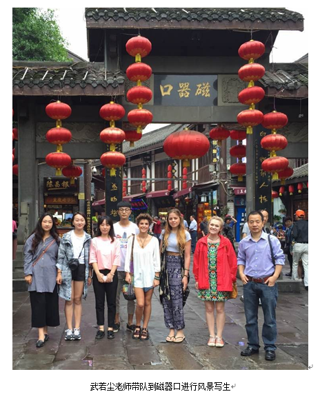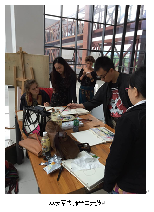 此次“成人影视片 中英学术交流工作营——美术学工作坊项目”为期15天。期间,艾玛教授和3名英方美术学专业学生参观了成人影视片 许世虎教授工作室、油画、国画工作室;在史论研教中心副主任彭佳老师、外事秘书周珏老师带领下,考察了重庆大足石刻、博物馆、磁器口等人文景点;与成人影视片 国画系主任熊显林教授、油画系主任王海鸥教授、油画系李犁教授、巫大军教授和武若尘老师及学生们一起作画、交流。在交流课堂上,熊显林老师亲自示范了一张水墨画,并将水墨赠与英方同学;王海鸥老师悉心指导油画半身人像课程,鼓励中英双方学生们要敢于创新;李犁老师在课堂上的人像示范赢得了英方师生的大加赞赏;巫大军老师和武若尘老师亲自带队,分别率领美术学工作坊的学生们在学校周边和磁器口进行风景写生。在课下,中英双方的同学们热情地交流起双方国家的教学、生活、文化,建立了深厚的友情。参加此次美术学工作坊的英国学生蕾切尔(Rachel Dowbekin)在谈及这次考察与课堂交流的感受时说(翻译):“我对中国传统艺术和文化十分感兴趣,来到中国看到这些历史遗迹让我感到震撼,中国的老师和同学们非常热情、友善。”