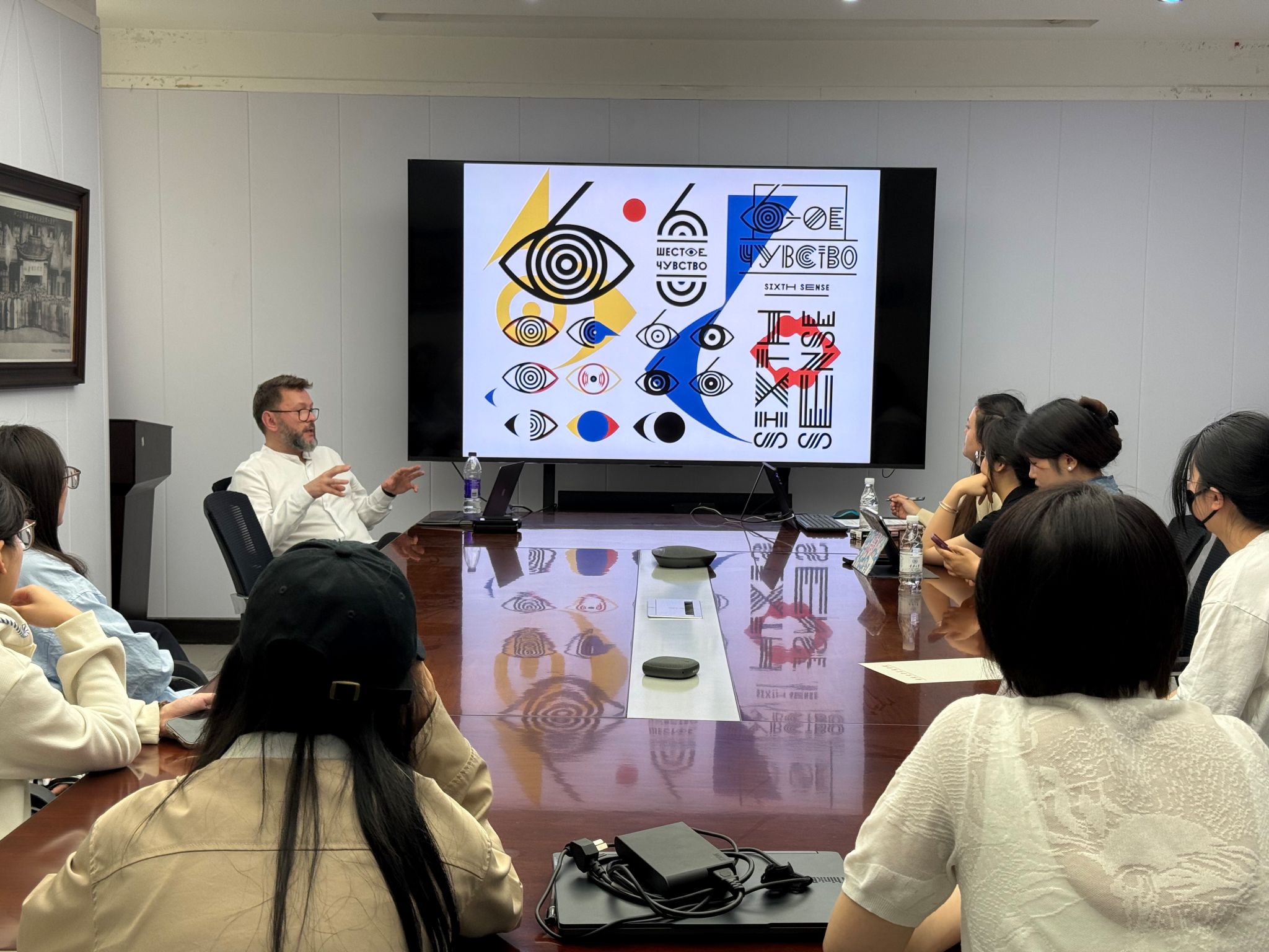 座谈会后,德米特里面向学院师生开展了以“文化机构的视觉设计”为主题的学术分享会。他结合自身多年的设计实践经验,深入解析设计中的挑战与解决策略。分享会现场,学生们就“传统文化与现代设计的冲突融合”“人工智能对设计师的影响”等问题踊跃提问,德米特里院长逐一解答。