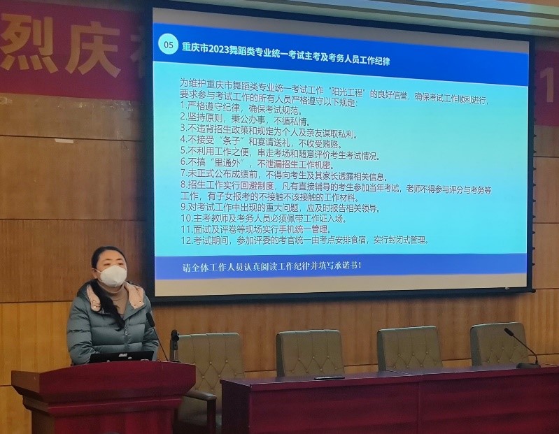 对本次考试工作高度重视,并就当下疫情严峻的工作形式,对重庆市2023年舞蹈类专业统一考试工作人员的重要职责提出明确要求,希望大家认真履职,严格遵守考试纪律,为考试工作的顺利开展保驾护航。