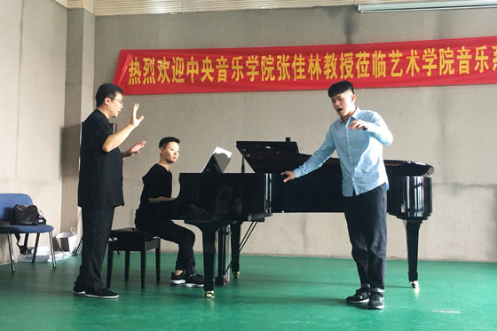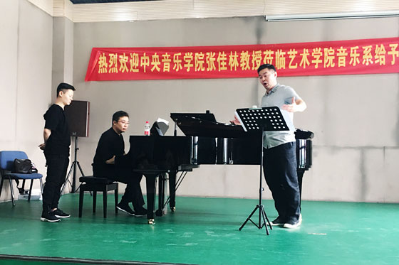 音乐系多位师生进行了声乐演唱的艺术指导,从作品的创作背景到写作技法,从情感分析到舞台处理,最后达到怎样的视听效果与艺术感染力,他表示艺术处理对表演的发生、发展、变化以及听众感受起着重要作用。张佳林教授生动幽默,干货满满的讲解让音乐系师生受益匪浅,受到师生的高度赞誉,现场不时响起笑声与掌声。
