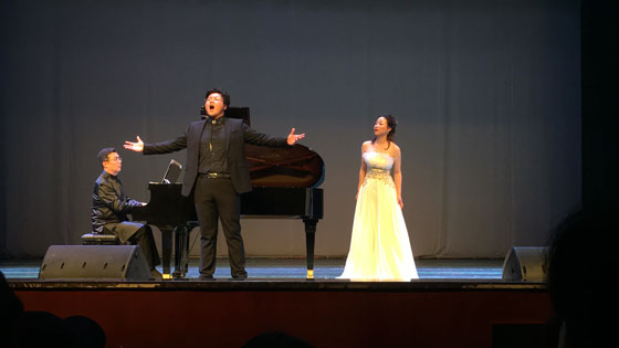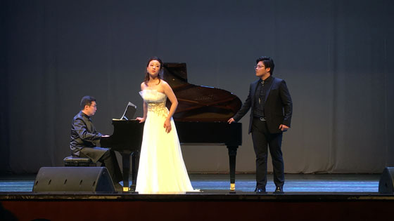 晚上七点半,张佳林教授带着两位中央音乐学院的学生许洋和周旎在虎溪小剧场献上了一台中外歌剧选段音乐会,从经典的《波西米亚人》到现代的《奔月》,演绎了不同风格的曲目,把艺术感染力表现得淋漓尽致,现场座无虚席,掌声雷动,舞台上下共谱艺术共鸣的华章。最后,伴随着美妙的歌声,经久不息的掌声,热情洋溢的笑声,这次活动圆满结束!