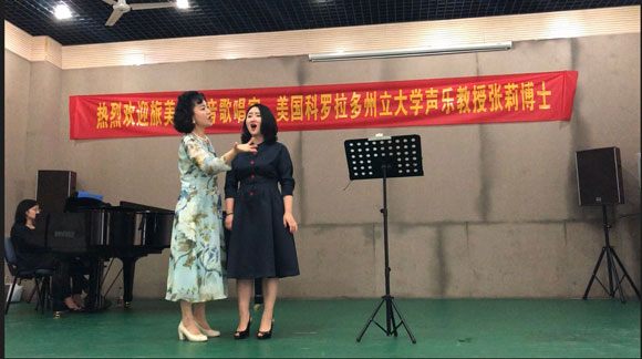 国际合作与交流处的大力协助下,2018年6月1日,旅美女高音歌唱家、美国科罗拉多州立大学声乐教授张莉博士应邀在 成人影视片