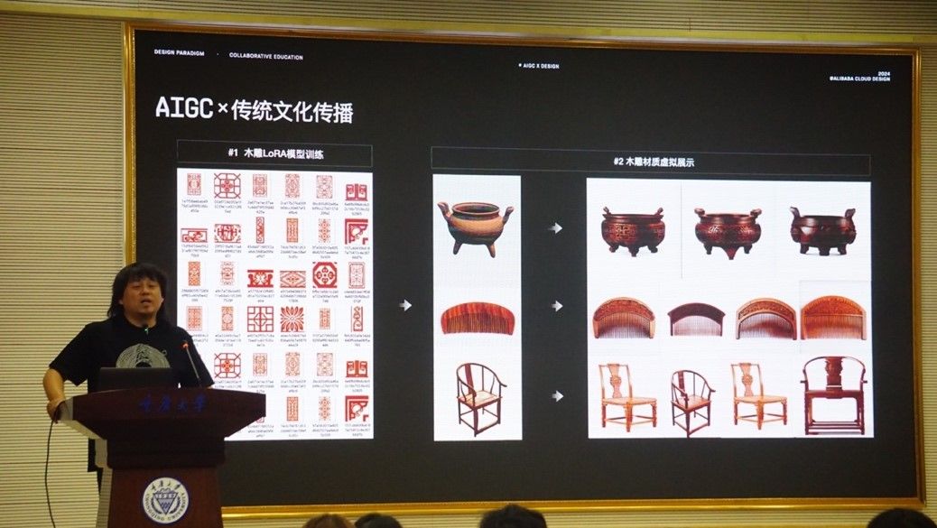 胡峻、李易晓还带领师生们亲自动手体验了PAI ArtLab AIGC实验。通过实操,同学们不仅掌握了AIGC技术的基本操作,还深刻体会到了技术带来的高效和便捷。最后,他们为现场呈现优秀设计作品的学生,颁发了精美的纪念品。