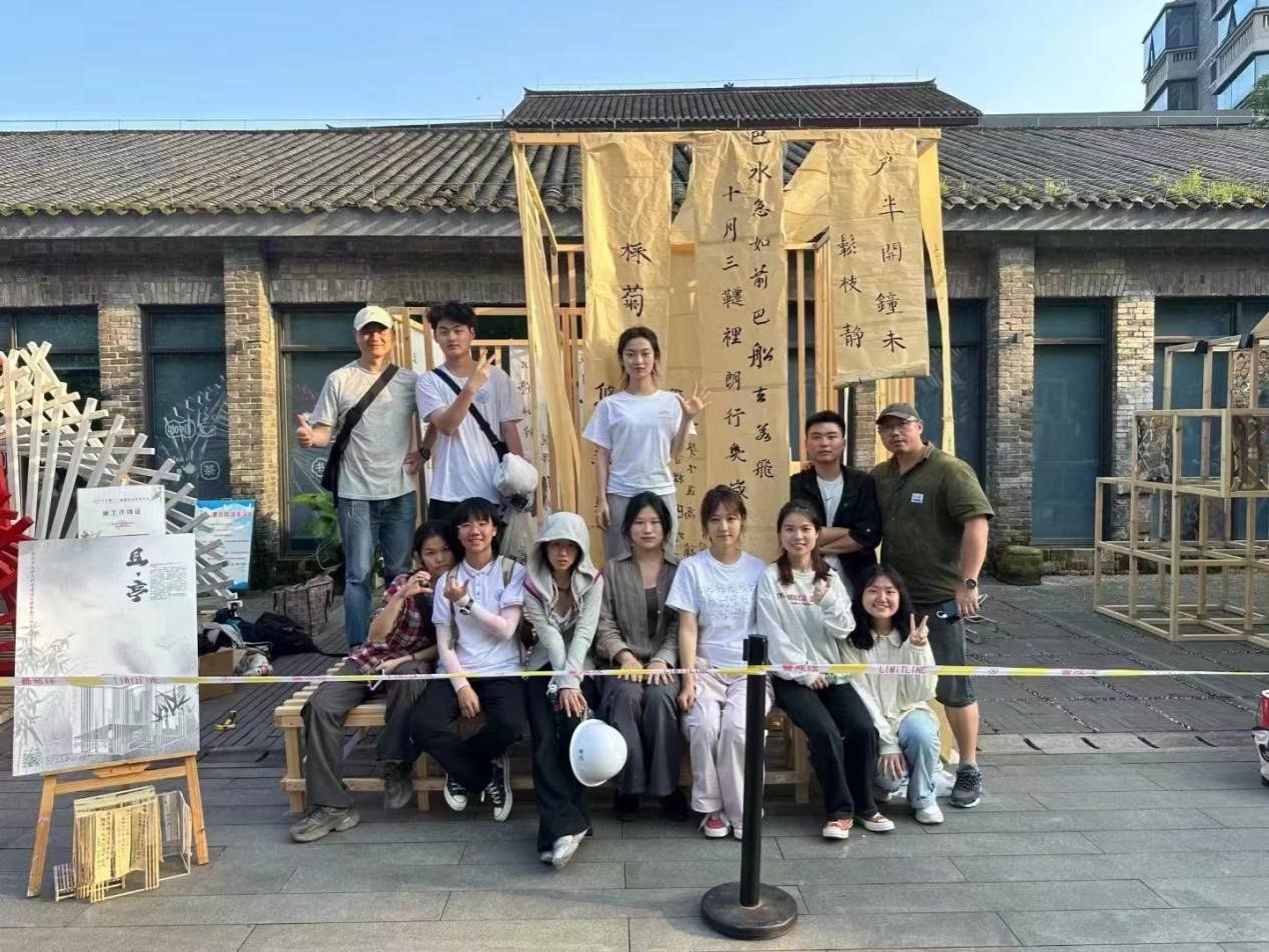 设计学系第一次应邀参赛。刘黔渝、高海燕、项之圆、范坤四位老师分别带领两组学生参与。设计学系组织一、二、三年级本科生参与报名并进行了选拔。这次参赛从开始的方案比选、木工操作训练、预搭建到最后的建造作品呈现,师生们投入课后时间倾力完成了设计作品。作品完成后吸引了磁器口大量游客的关注和参赛同行的好评。“建造季”为设计学系教学实践改革提供了新的思路。