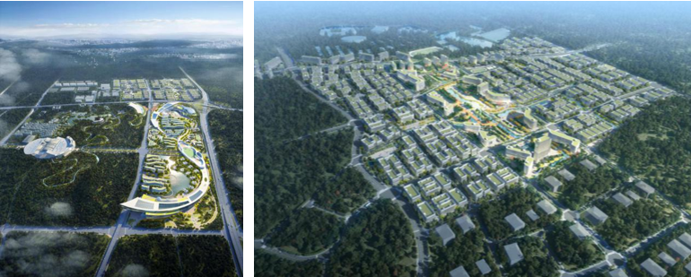 石板地块九永高速两侧区域效果图 巴福地块生物科技的产业城区域效果图
