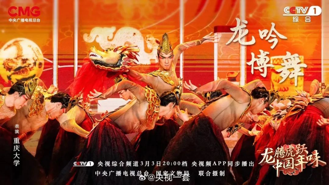 2024年3月3日晚,学校原创舞蹈《手龙人》团队亮相中央广播电视总台央视综合频道(CCTV-1)综艺节目《龙腾虎跃•中国年味》,表演原创舞蹈《龙吟博舞》。这也是团队师生继荣登中央广播电视总台《2024春节联欢晚会》后,再登央视舞台,面向全国观众深入展现中华优秀传统文化的独特魅力。