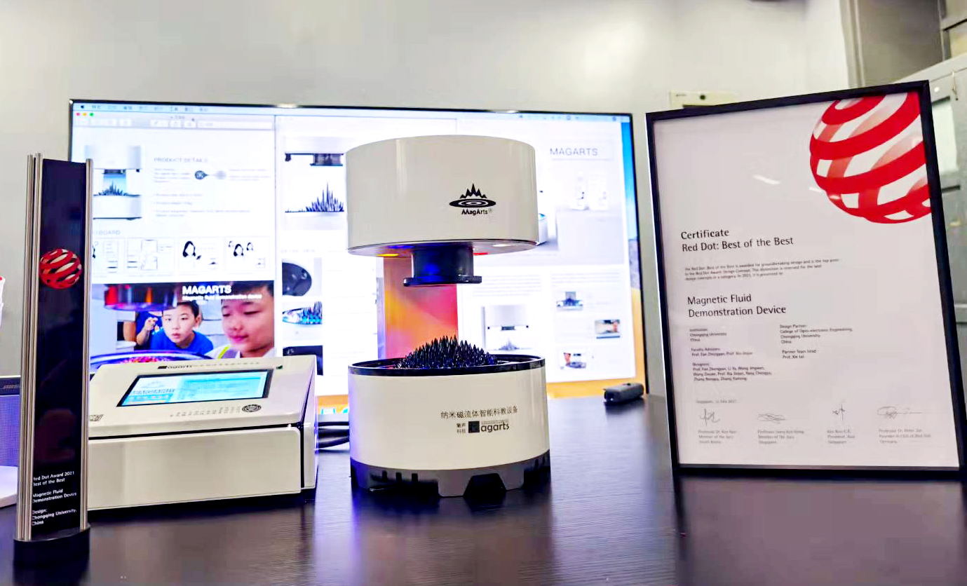 2021年红点设计奖落下帷幕。由 成人影视片 夏进军副教授、范正妍副教授与光电学院谢磊副教授共同组建的设计团队凭借设计作品《Magnetic Fluid Demonstration Device磁流体演示仪》获得Red Dot Award 2021: Best of the Best 红点设计至尊奖。