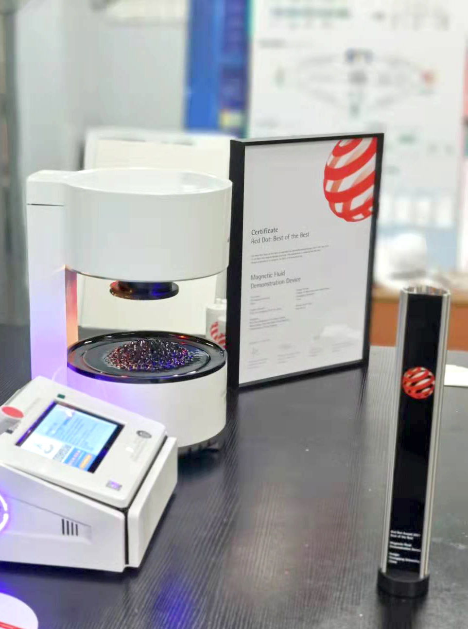 红点设计奖一直有「设计界的奥斯卡」的美誉,是国际公认的全球工业设计顶级奖项。红点设计奖是由德国设计协会Design Zentrum Nordrhein Westfalen创立,至今已有超过65年的历史,每年吸引了超过60个国家,1万余件作品投稿参赛,赢得红点奖成为每位设计师引以为豪的殊荣。红点至尊奖讲究创新设计的极致,是红点设计奖的顶级奖项。只有各组别当中最优秀的产品,才能拥有这个年度奖项。成人影视片 设计团队完成的作品《Magnetic Fluid Demonstration Device磁流体演示仪》参与了红点奖设计概念(design concept)类的评选,一举获得该类别的Best of the Best至尊奖。