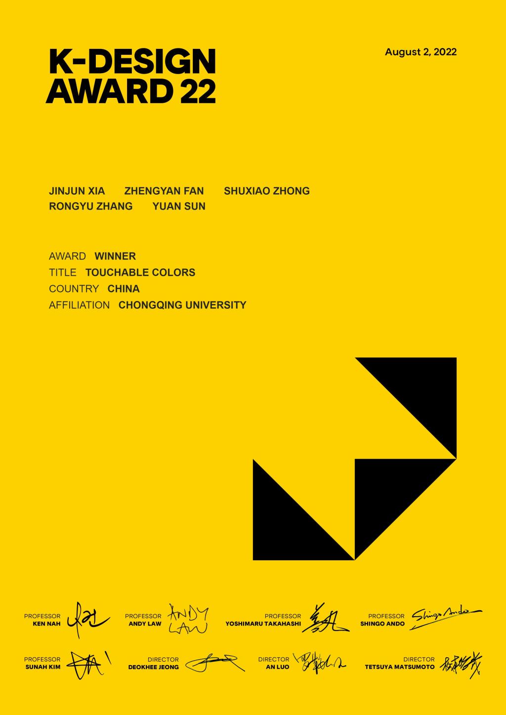 设计学系产品设计专业团队完成的作品Touchable Colors 荣获K-DESIGN AWARD 22 WINNER,