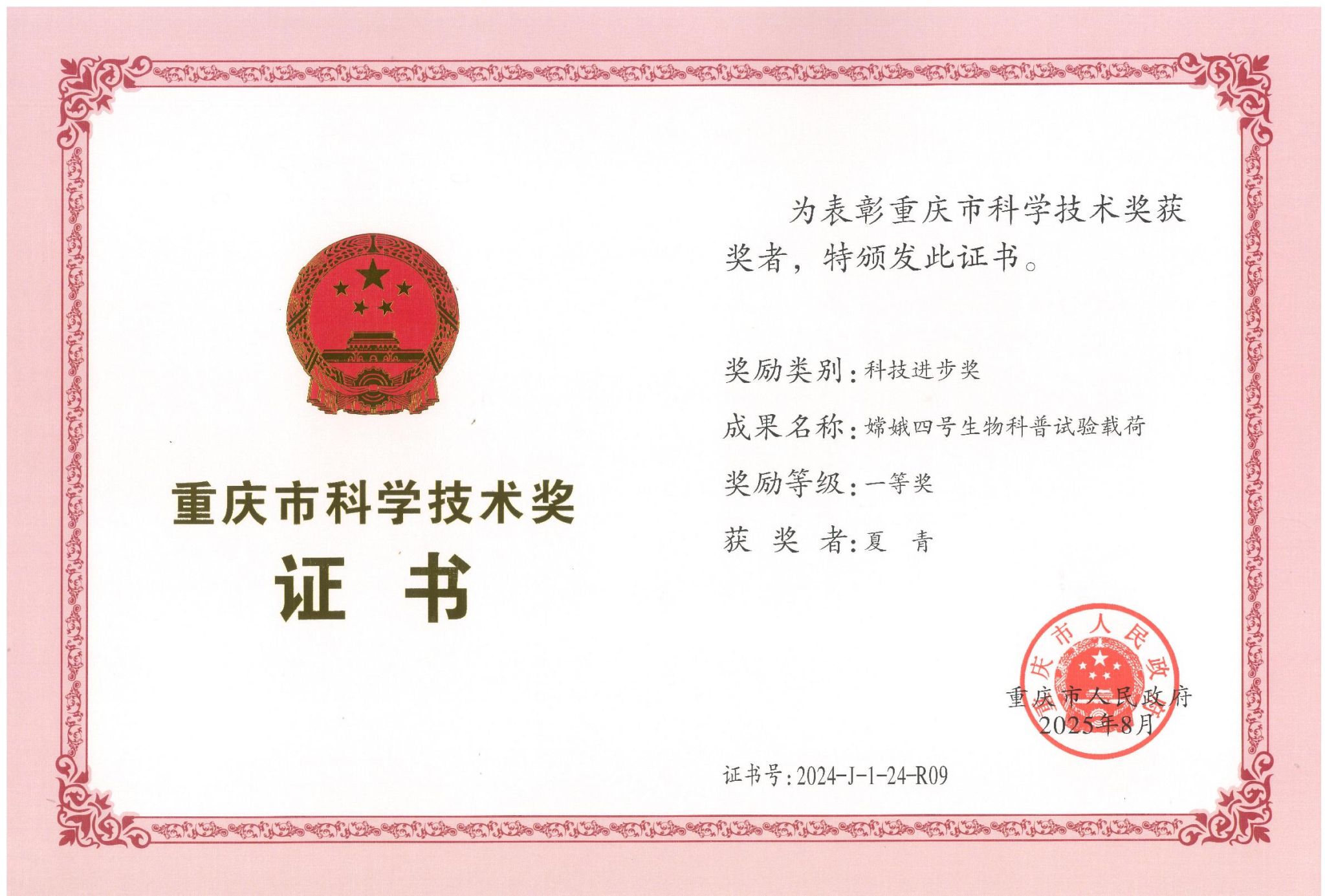 近日,2024年度重庆市科学技术奖揭晓,由教育部深空探测联合研究中心(成人影视片 )牵头、 成人影视片 元宇宙研究中心副主任夏青团队深度参与的“嫦娥四号生物科普试验载荷”项目荣获科技进步奖一等奖。