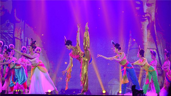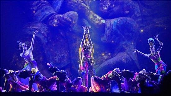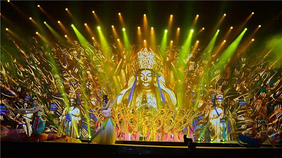 舞蹈《千手观音》以世界非物质文化遗产大足石刻作为表现主题,依托重庆的地域文化与历史参照,运用中国汉唐古典舞的舞蹈语汇与元素,描绘了大足石刻的灵动浑厚与磅礴大气。同学们以动态的舞蹈造型诠释雕塑艺术的静态安然之美。一朵朵涌动不息的莲花,一双双纤巧动人的玉手,韵味独特的舞蹈艺术展示,为来自海内外的嘉宾带来视觉以及心灵上的饕餮盛宴,得到了观众及市委宣传部、市文化委、市舞协等领导与同行的高度认可。